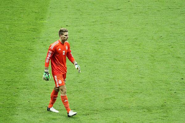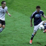 Unten auf dem Rasen richteten sich natürlich alle Blicke auf Messi, den besten Fußballer der ganzen Welt. Wer gedacht hatte, dass die Fans von Argentinien mit Fackeln, Rauch und Wurfchoreos ihre eigene Art des Fußballsfandaseins zelebrierten, wurde arg enttäuscht – es ging überall auf den Rängen recht brav zu. Das Spiel war zu Beginn recht flott, wahrscheinlich verfluchte sich Jogi Löw innerlich, dass er Marco Reus beim EM-Spiel gegen Italien nicht zu Beginn gebracht hatte, denn dieser spielte so, als hätte dies durchaus Sinn gemacht. Zwei Spieler dürften diese Partie so schnell nicht vergessen. Auf der einen Seite der Hannoveraner Torhüter Ron Robert Zieler, der von Beginn an den verhinderten Manuel Neuer vertrat und nach einer halben Stunde im Strafraum zum äußersten Griff, nämlich nach den Beinen von Sosa, der hinfiel und entspannt dem fälligen Elfmeterpfiff von Schiri Eriksson aus Schweden lauschte. Und wie es das Gesetz vorschreibt, hielt dieser dem deutschen Torhüter die Rote Karte unter die Nase. Bedröppelt schlich er von dannen. Dessen Platz im Gehäuse wurde nun von Marc-André ter Stegen eingenommen, für den Thomas Müller weichen musste. Elfmeter also für Argentinien, Messi läuft an, meint es gut und ter Stegen hält. Ein Raunen ging im weiten Rund umher, gefolgt von einer Welle. In der Nachspielzeit schubste Khedira nach einer Ecke den Ball unglücklich ins eigene Netz – 0:1 der Halbzeitstand.