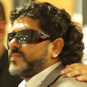 Schlusspfiff, Ende, aus. Wir betrachteten das Treiben noch eine Weile, begrüßten freudig Bernd Schneider, dessen tadellose Saison 98/99 im Trikot der Eintracht ewig unvergessen bleiben wird und marschierten nach unten. Und urplötzlich fand sich Pia in den Armen von … Maradona wieder. Ich weckte den Paparazzi in mir, nestelte an der Kamera und drückte zwei Mal ab. Na, das war ja jetzt ein Ding. Pia und die Hand Gottes. Auf einem Bild. Ich schaute auf das Display und zuckte zusammen. Schwarz auf Schwarz – dazwischen … Schwarz. Irgendwie musste ich das Drehrad zu den Belichtungsoptionen verstellt haben – und wer mit einer Belichtungszeit von 1/800 in geschlossen Räumen fotografiert, der darf sich nicht wundern. Toller Paparazzi in mir. Aber das Erlebnis nimmt Pia niemand mehr – und immerhin konnte ich mithilfe digitaler Manipulation doch noch was aus dem Bild rausholen. Sieht zwar jetzt ästhetisch aus wie ein Fahndungsfoto der RAF zu Beginn der Siebziger – aber was solls.