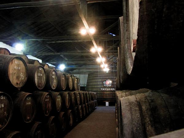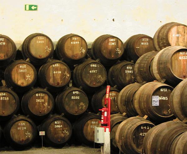 Gegen 16 Uhr versammelte sich ein kleines Grüppchen und wurde von einer jungen Portugiesin in die heiligen Hallen geführt – und dort wurden wir auf englisch in das Wesens des Portweins unterrichtet. Wir erfuhren, dass es drei Sorten gibt, den weißen, den Ruby und den Tawny wobei letztere aus den gleichen Trauben bestehen und sich ob der Lagerung in unterschiedliche Sorten entwickeln. Während der Ruby, der rote also, in großen 20.000 Liter Fässern reift, lagert der Tawny in kleineren Eichenfässern, hat mehr Kontakt zum Holz und erhält dadurch seine bräunliche Farbe. Die Fässer übrigens werden von den Rotweinherstellern gebraucht gekauft und landen anschließend bei den Whiskeydestillerien.