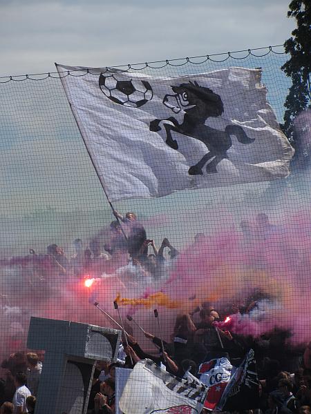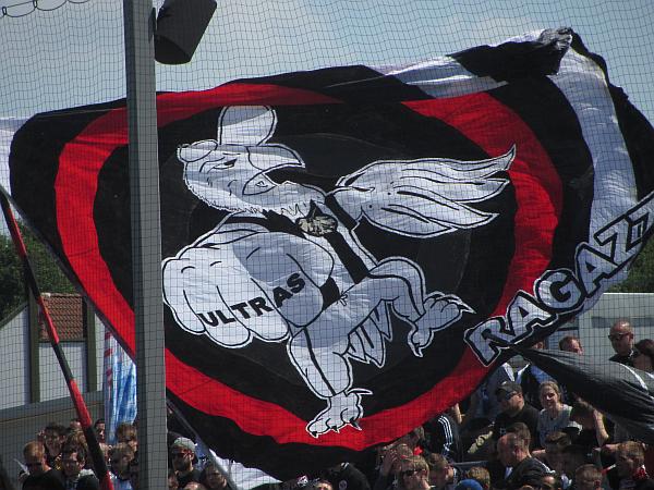 schwierige sache das, kerstin – mit der verankerung ist das so ein ding bei spielen am bornheimer hang vor höchst überschaubaren zuschauerzahlen. ein banner habe ich nicht gesehen, aber der ein oder ander hat geknoddert.