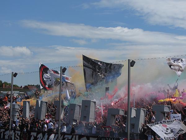 Während die U23 in den letzten Jahren von einigen Spitzenspielen abgesehen doch eher unter Ausschluss der Öffentlichkeit spielte, so sollten beim letzten Spiel über Tausend Fans eine stimmgewaltige Kulisse bilden – nahezu ausschließlich Eintrachtler, Gästefans aus Pfullendorf waren so gut wie keine anwesend.