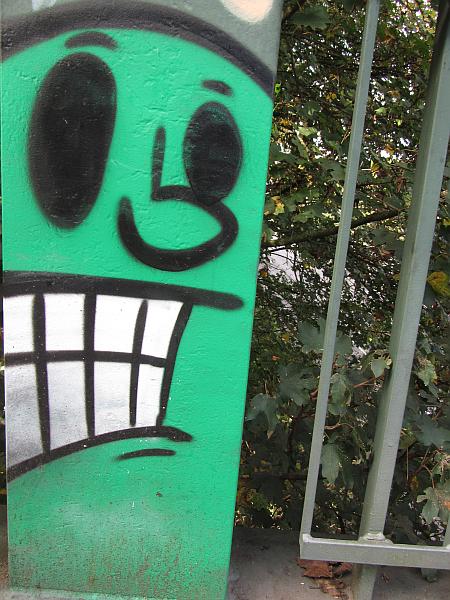 Am Abend zuvor hätte mich ja beinahe ein Autofahrer an einer für mich grünen Ampel umgemäht. Wir liefen los, als der erste Wagen unseren Weg kreuzte, das war noch ungefährlich. Der zweite aber knallte gegen den Vorderreifen meines geschobenen Fahrrades – und machte sich flott vom Acker, ich noch hinterher aber natürlich chancenlos. Wie scheiße muss man sein, um nach so einer Situation einfach abzuhauen. Frage ich mal so, du Knallkopp mit dem Kennzeichen FB DN 105. Wenigstens ist außer einem mächtigen Schreck nichts passiert und lustig wurde es im Feinstaub dann auch noch, traf ich doch Leute, die ich seit nahezu Jahrzehnten nicht gesehen hatte. Waren spät zuhause, so gegen viertel nach Bier.