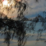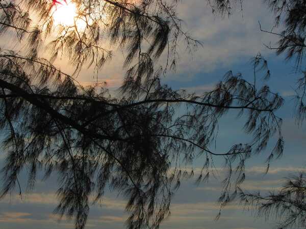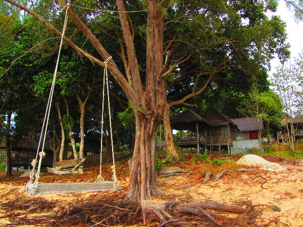 Auch nach etlichen Tagen hier, gehören die Sonnenuntergänge zum Schönsten, was ich je gesehen habe, ein jeder unterschiedlich, ein Farbspektrum von blassblau und pastellrosa bis hin zu leuchtblau, sonnenrot, wolkengrau, sommergelb, und buntorange. Ein Adler kreist kurz am Himmel, dessen Farben sich ineinander vermengen, bis die Nacht dunkelt. Am intensivsten erscheint das Farbspektakel, wenn der Sonnenball verschwunden ist und das nachtblau sich in den Himmel schiebt. Heute ist Vollmond, leider wandern einige Wolken umher, die Nacht ist nicht sternenklar, aber schön und warm und freundlich. Ich mache einen Strandspaziergang, setze mich auf eine Schaukel, die in den Bäumen vor einem nicht bewohnten Resort hängt und schaukle sachte in die Nacht, das Meer brandet leise an den Strand. Das Resort macht eigentlich einen schlichten aber netten Eindruck, nur die Nachtleuchten an den Hütten und Wegen leuchten grell ins Dunkel. Es juckt mich, bunte Folien um die Lampen zu wickeln, die aber natürlich nicht dabei habe.