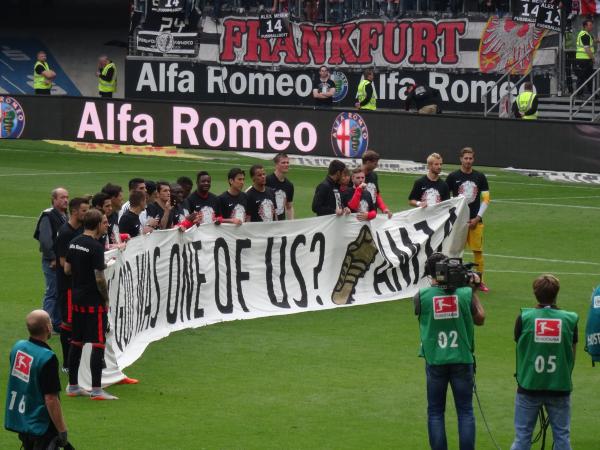 Ich laufe vom Gleisdreieck Richtung S-Bahn-Haltestelle Stadion, es ist ruhig, die Nacht hat sich über Frankfurt gelegt, an der Haltestelle ist niemand außer mir vor Ort. Ein Schild verkündet die Ankunft der S8 Richtung Offenbach in zehn Minuten. Ich warte und hänge meinen Gedanken nach, sehe Alex Meier auf dem Container der Ultras, denke an die vielen kleinen oder längeren Gespräche des Tages, die Hallos und Gudewies. S8 nach Offenbach in fünf Minuten verkündet das Schild. Kurz darauf: Ankunft in Kürze.