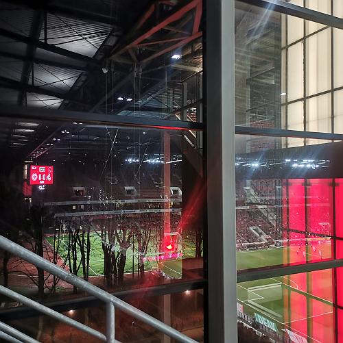 Immerhin 500 Eintrachtler durften zum Auswärtsspiel der SGE nach Köln, das ist nicht gerade viel, aber wenigstens etwas – und wir hatten Glück und bekamen Tickets, wofür wir uns extra auf den Seiten des 1. FC Köln registrieren mussten, geschenkt. Hauptsache wir sind mal wieder unterwegs. Und das waren wir auch. Am Abend zuvor machte ich noch ein kleine Nachtführung durch unser Stadion.