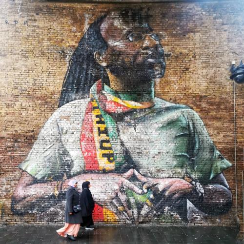Der Morgen begann mit einer kleinen Enttäuschung. Bei unserem ersten Besuch im Enrico Hotel bestand das Frühstück aus Spiegeleiern, Speck und Bohnen, dazu Toast und Marmelade. Beim zweiten Besuch fiel der Speck weg und nun? Lumpiges Gebäck aus der Tüte. Also nichts wie raus … in den Regen, der aber im Laufe des Tages keine wesentliche Rolle spielen wird. Die zweite Enttäuschung war ich selbst, hatte ich doch meinen Akku für die Kamera in Frankfurt liegen lassen. Und da ich gestern zig Bilder vor allem von Streetart an der Brick Lane geschossen hatte, neigte sich der Akku dem Ende entgegen.