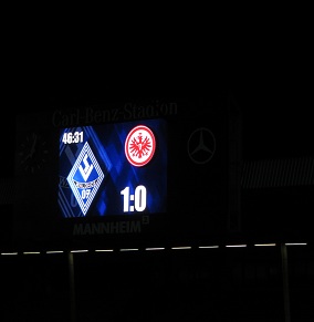 Um der Nostalgie des geerdeten Traumes von Europa ganz unsentimental die raue Wirklichkeit entgegen zu setzen, hieß es am Freitag abend für Flo, Thor und mich: Auf nach Mannheim, die U23 der Eintracht spielt. Wir mussten keinen Flug buchen, kein Hotel reservieren, nein, wir setzten uns ganz traditionell ins Auto und fuhren los.