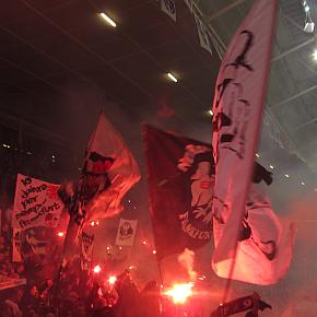 Es war bereits dunkel und ein Teil der Arbeit getan. Die bestand vor allem darin, drei Stehplatz-Tickets für das Auswärtsspiel der Eintracht bei der TSG Hoffenheim zu organisieren. Für Matze, für Ingo und für mich. Dank Suse, Muelli und Arne hatten wir kurzfristig Glück, die Tickets holte ich Mittags bei Arne ab, es konnte also losgehen. Pia hatte sich schon anfangs der Woche entschieden, in Frankfurt zu bleiben. Und wenn sie sich entschieden hat, dann ist das so.